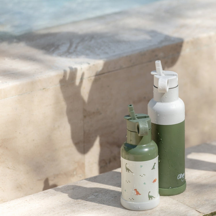 Little Big Water Bottle - QR-Enabled Lost-Proof 350ml - Green White Dino
